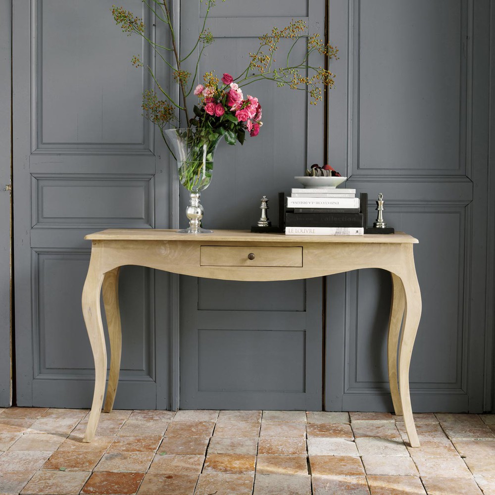 Rappelant un meuble drapier de style classique, la console en manguier et acacia COLETTE vous offre