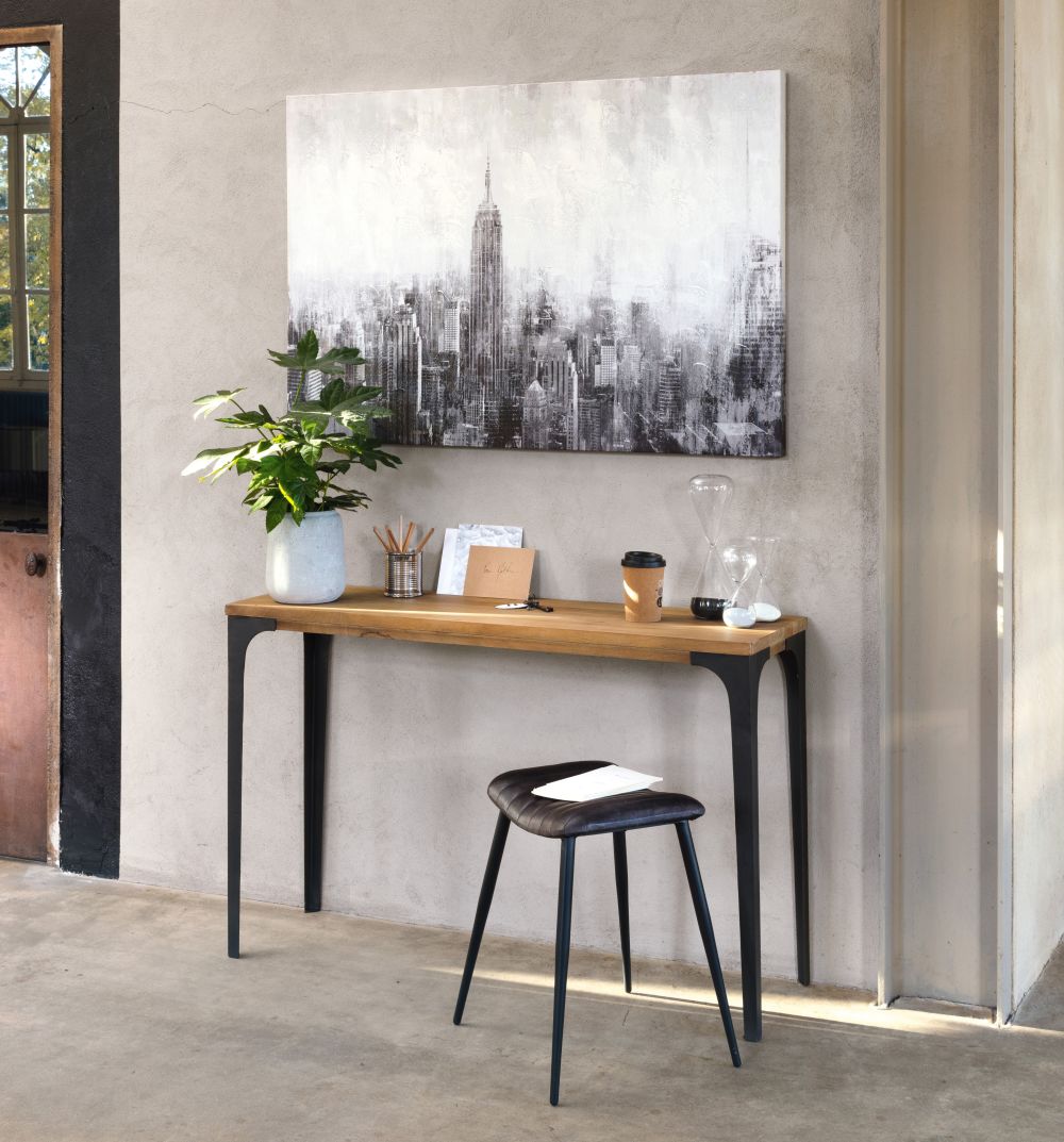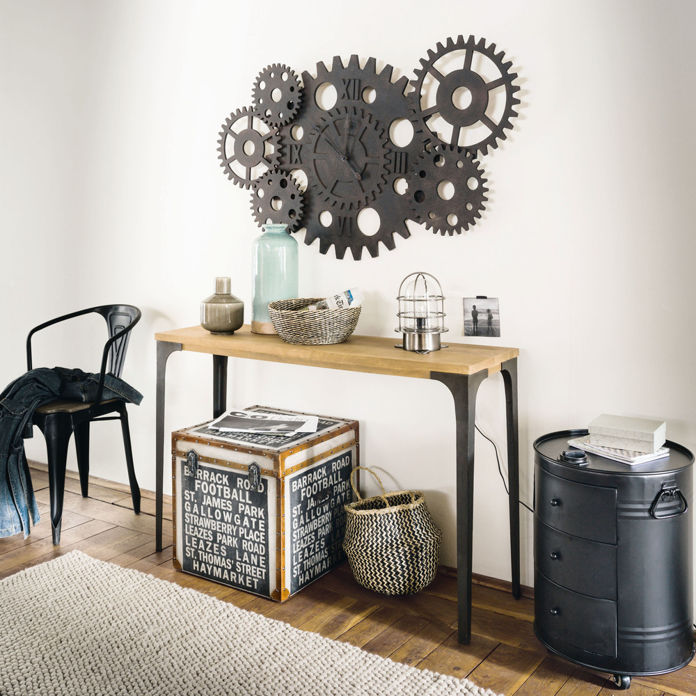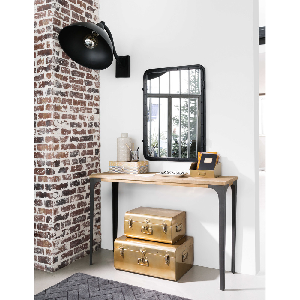 Toute en sobriรฉtรฉ, cette console mรฉlange le bois de manguier massif au mรฉtal pour une esthรฉtique trรจs industrielle.
