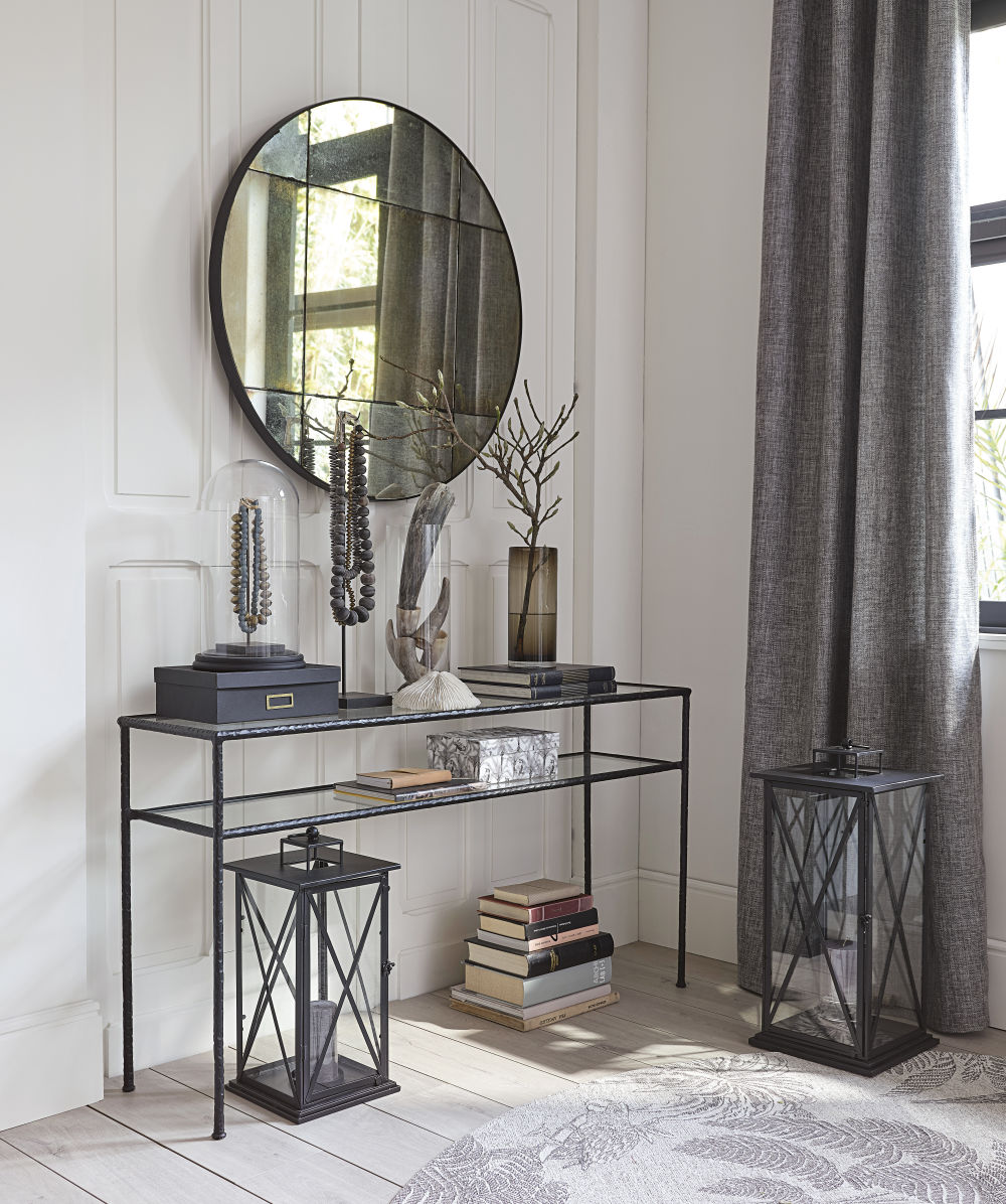 Laissez-vous envoรปter par la forme et le style exotique du tapis rond beige imprimรฉ gris anthracite