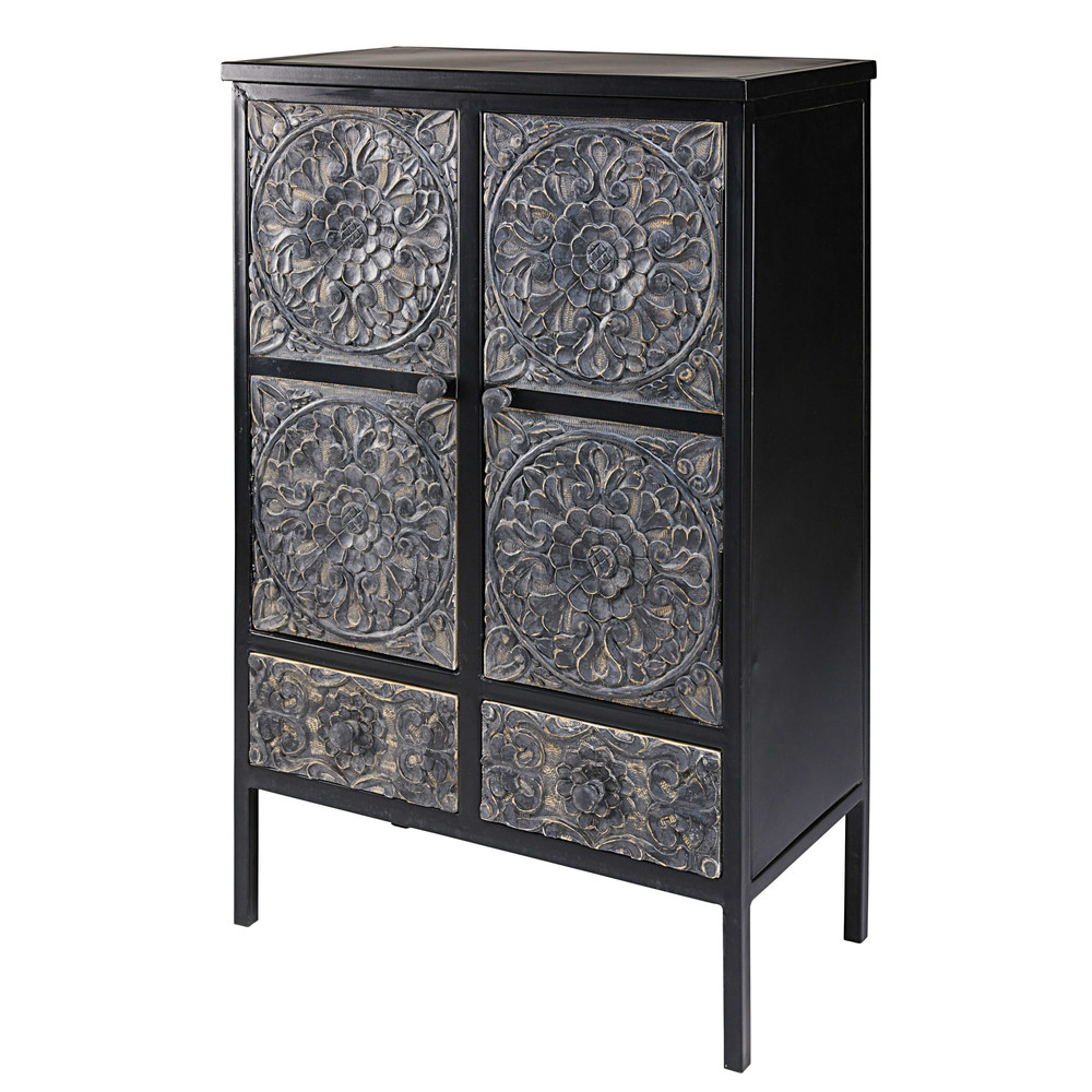 Un vent d’exotisme souffle sur votre intérieur avec le cabinet en métal et manguier sculpté TOPAZE.