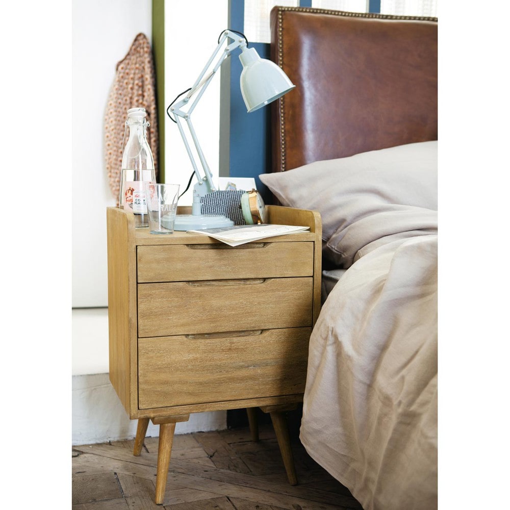 Le chevet vintage Trocadéro adopte une ligne très fifties qui ravivera sûrement des souvenirs… Cette table de chevet en bois de manguier massif possède des montants arrondis qui encadrent le plateau. Doté de 3 tiroirs de taille croissante, ce chevet rétro fera également office de support pour une belle lampe de chevet.