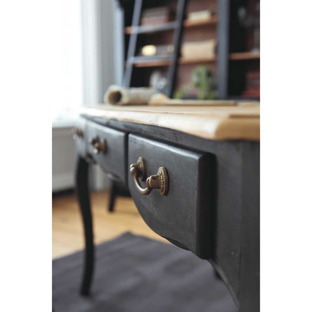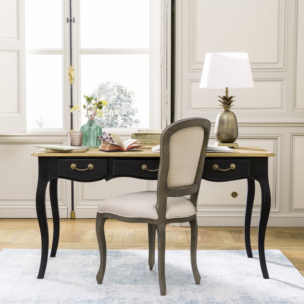 Vous souhaitez crรฉer une atmosphรจre classique et รฉlรฉgante dans votre espace de travail ? Le bureau en manguier noir VERSAILLES et son style Louis XV apporteront une touche de chรขteau ร votre intรฉrieur ! Le contraste entre le manguier noir et la teinte claire du bois cirรฉ crรฉera une ambiance pleine de charme. Dotรฉ de 3 tiroirs, ce meuble de bureau accueillera toutes vos fournitures. Cรดtรฉ dรฉcoration, n’hรฉsitez pas ร associer votre nouveau meuble ร une chaise noire en lin : rien de plus raffinรฉ !