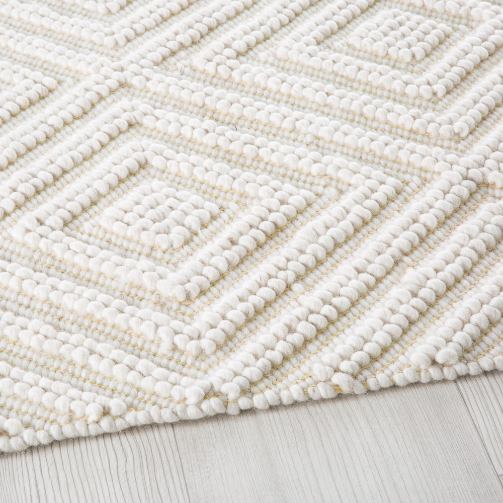 Dynamisez votre déco avec le tapis en laine et coton écru 140×200 ZEINA. Avec ses motifs graphiques